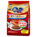 穀類(トウモロコシ、パン粉、コーングルテンミール等)、肉類(チキンミール、ポークミール、ビーフミール、チキンエキス)、魚介類(フィッシュミール、フィッシュエキス、煮干パウダー、かつお節、まぐろミール、かつおミール、白身魚ミール、乾燥シラス)、セルロースパウダー(食物繊維源)、動物性油脂、野菜類(ビートパルプ)、酵母、酵母エキス、ミネラル類(カルシウム、塩素、コバルト、銅、鉄、ヨウ素、カリウム、マンガン、ナトリウム、リン、亜鉛)、調味料、ビタミン類(A、B1、B2、B6、B12、C、D、E、K、コリン、ナイアシン、パントテン酸、ビオチン、葉酸)、着色料(二酸化チタン、赤色102号、赤色106号、黄色4号、黄色5号、青色1号)、アミノ酸類(タウリン)、酸化防止剤(ミックストコフェロール、ハーブエキス)