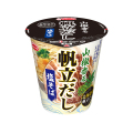油揚げめん(小麦粉(国内製造)、植物油脂、食塩、しょうゆ)、スープ(食塩、しょうゆ、ホタテエキス、植物油脂、たん白加水分解物、糖類、チキンエキス、オニオンエキス、香辛料、ジンジャーペースト、デキストリン、でん粉、にんにく調味料、チキン調味料、粉末しょうゆ、魚醤、香味調味料、ポーク調味料)、かやく(ねぎ、麸、メンマ)/加工でん粉、調味料(アミノ酸等)、酒精、炭酸Ca、香料、かんすい、カロチノイド色素、増粘剤(加工でん粉、グァーガム)、酸化防止剤(ビタミンE)、酸味料、カラメル色素、ビタミンB2、ビタミンB1、(一部に小麦・卵・乳成分・ごま・大豆・鶏肉・豚肉・ゼラチンを含む)
