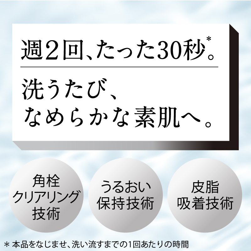 毛穴の黒ずみ汚れ・ざらつきを落とし、洗うたび、瞬間つるん。
