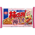 うるち米粉(国産)、でん粉、ピーナッツ(ピーナッツ、植物油脂、食塩)、しょうゆ、梅しそシーズニング、砂糖、魚介エキス調味料、たん白加水分解物、こんぶエキス、乾燥梅肉/調味料(アミノ酸等)、加工でん粉、酸味料、ソルビトール、香料、着色料(カラメル、パプリカ色素、ムラサキトウモロコシ色素)、甘味料(スクラロース、ネオテーム)、香辛料抽出物、乳化剤、(一部に小麦・卵・落花生・大豆・鶏肉・豚肉を含む)