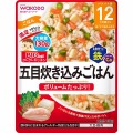精白米(国産)、野菜(にんじん、さやいんげん、ほうれんそう)、かつお昆布だし、鶏肉加工品(鶏肉、オニオンソテー、でん粉、粒状大豆たん白、粉末状大豆たん白)、しょうゆ、まいたけ水煮、砂糖、チキンブイヨン、食塩、米酢/増粘剤(加工でん粉)、炭酸カルシウム、クエン酸、ピロリン酸鉄
