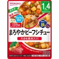 野菜(にんじん(国産)、たまねぎ、ブロッコリー、さやいんげん)、じゃがいも、牛肉加工品(牛肉、でん粉、海藻粉末、食塩)、しょうゆ(小麦・大豆を含む)、トマトピューレー、トマトケチャップ、野菜ブイヨンペースト、バター、砂糖、チキンエキス/増粘剤(加工でん粉)、炭酸カルシウム、クエン酸、ピロリン酸鉄