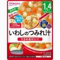 野菜(にんじん(国産)、だいこん、キャベツ、さやいんげん)、豆腐(豆乳(大豆を含む)、でん粉、デキストリン)、いわしボール(いわし、パン粉、小麦粉、たまねぎ、植物油脂、食塩)、かつお昆布だし、しょうゆ、たいエキス、砂糖、食塩/増粘剤(加工でん粉)、炭酸カルシウム、クエン酸、豆腐用凝固剤、ピロリン酸鉄