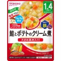 野菜(にんじん、とうもろこし、たまねぎ、キャベツ、さやいんげん)、じゃがいも(国産)、オニオンソテー、チキンブイヨン、さけほぐし身、バター、全粉乳、食塩、砂糖/増粘剤(加工でん粉)、炭酸カルシウム、クエン酸、ピロリン酸鉄
