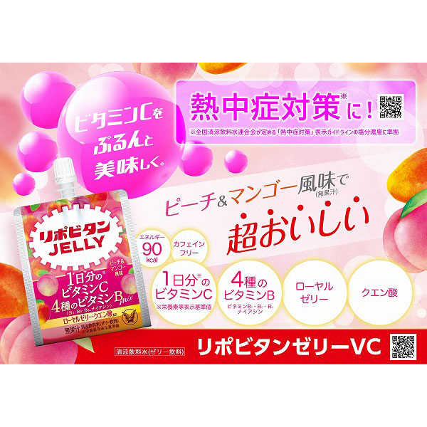 ●手軽に栄養をチャージしたい時にオススメのゼリー飲料。ビタミンC500~1800mg、ローヤルゼリー150mg、ビタミンB1・B2・B6、ナイアシンを一度に摂取できます。