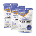 添加物:ヘム鉄、ゼラチン、V.B6、ステアリン酸Ca、二酸化ケイ素、カラメル色素、V.B2、葉酸、V.D、V.B12