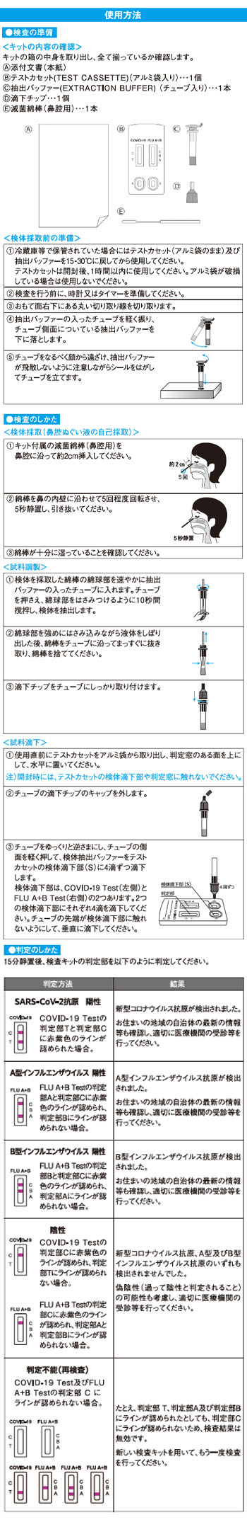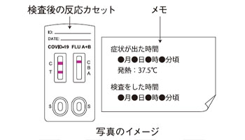 ・発症からの経過時間によって判定結果が変わりうるため、症状が出てから本キットを使用するまでの時間を記録し、医療機関の受診時に本キットの結果とあわせて医師に伝えてください。