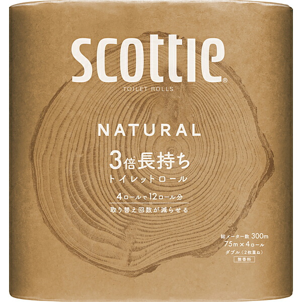 スコッティナチュラル 3倍長持ちダブル(無香料) 75m 4ロール×12個入り (1ケース)(SH) トイレットペーパー