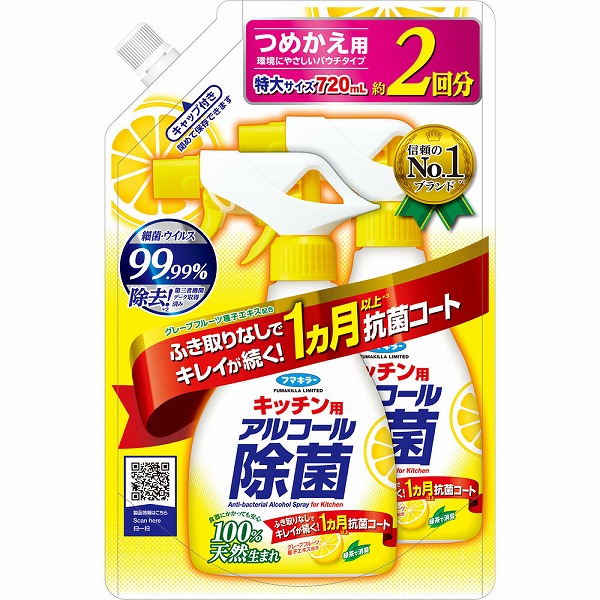 ◆必ず「フマキラーキッチン用アルコール除菌スプレー」のボトルにつめかえてください。